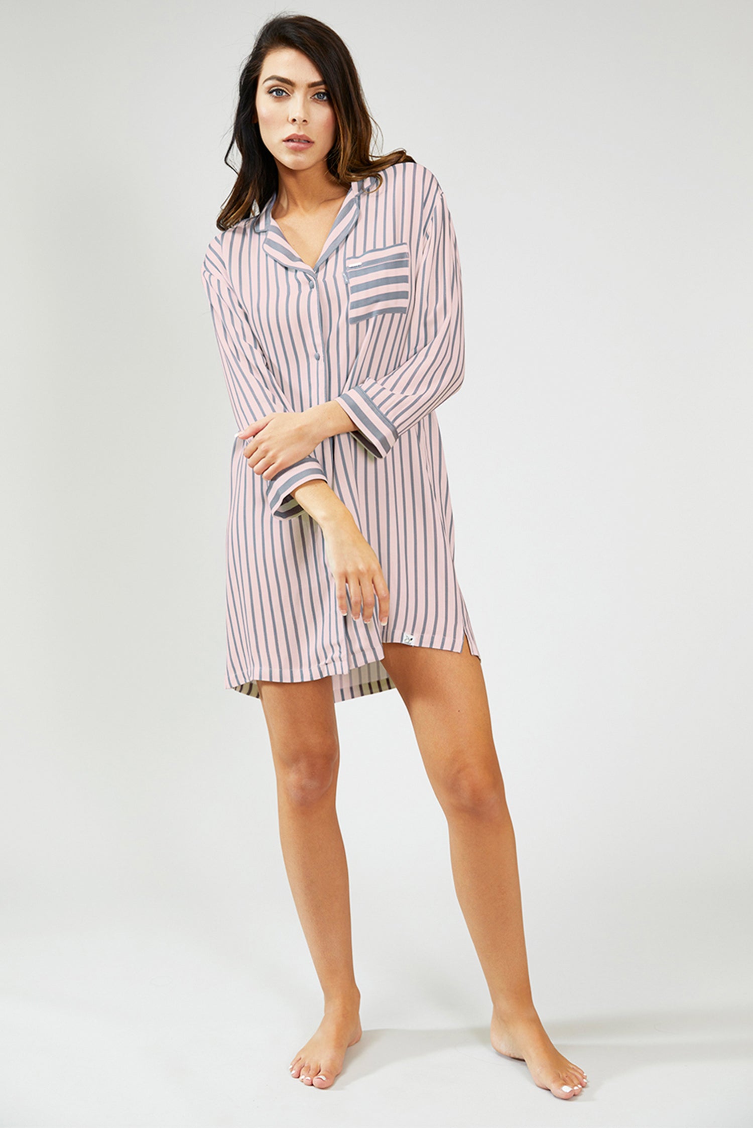 Stripe Nightshirt Pink | Women’s Nightwear | Pretty You London UK 14-16 / Pink/Grey