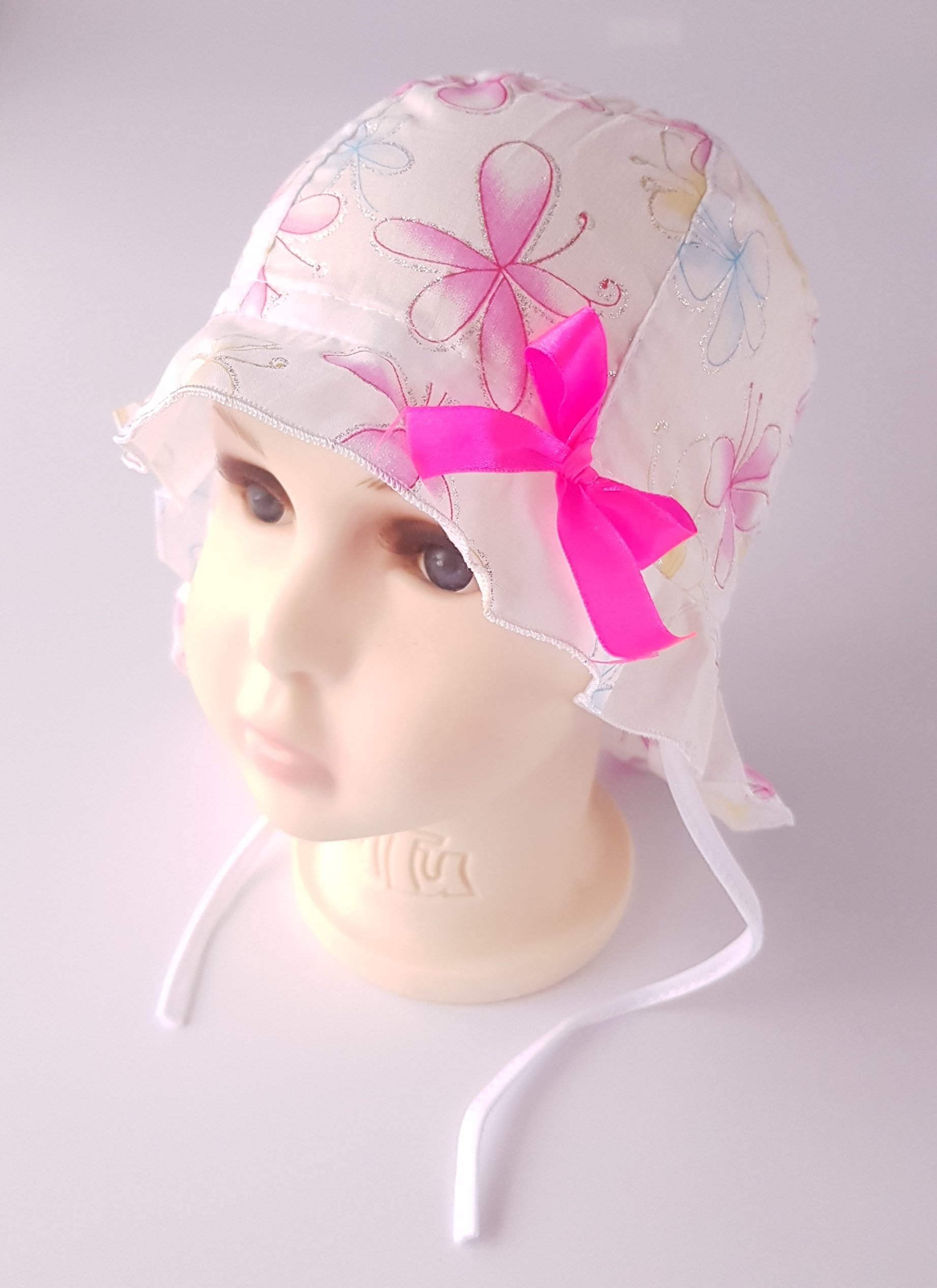 These posh hats with the strings are perfect for summer They are made from 100% cotton. The strings makes them comfy and help to keep the hat on your baby head. They have a little elastic at thr back so they adjust to the child’s head. They are longer at the back so they cover the child’s neck and protect against sun burns. It’s important to feel comfy with a bit of style during this sensitive time. These custom lightweight hats are protecting your baby head from the sun. Lovely bow ornament and flowers and a bit of glitter . The perfect finishing touch to your baby already stylish little outfits. Available in two styles : with yellow bow or pink bow. Sizes available range from 2 months up to 3 years Manufacturer BeBe-Mar exclusively for Lovinghats – Family owned Company in Poland. We take care of the comfort of our little customers. All hats have the Children and the Infants Safety Certificates.