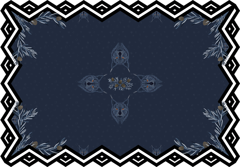 Organic Cotton Table Linen Sets – Winter lynx an exclusive Prado y Barrio design, centers around the Iberian Lynx, surrounded by elegant branches of pine, and chestnuts as a delicate background. 100% Organic Spanish Cotton table cloth, napkins, storage bag. Medium and large sizes. Winter Iberian Lynx The design Yard.