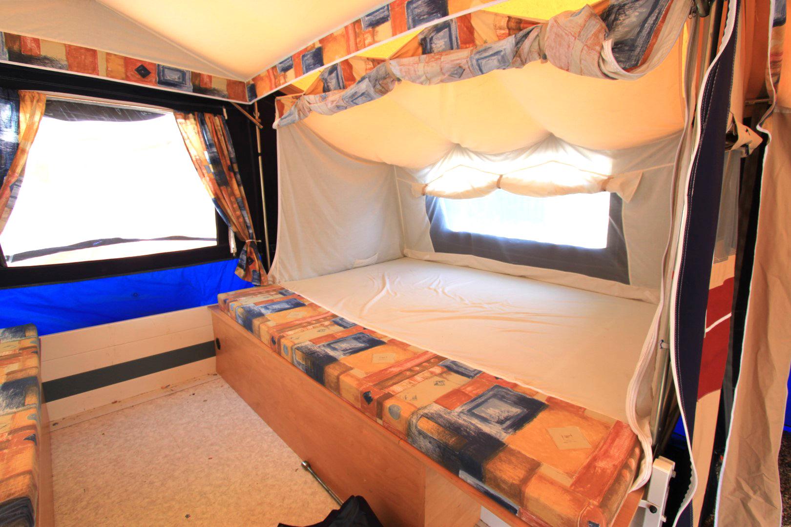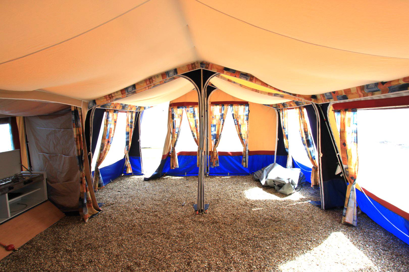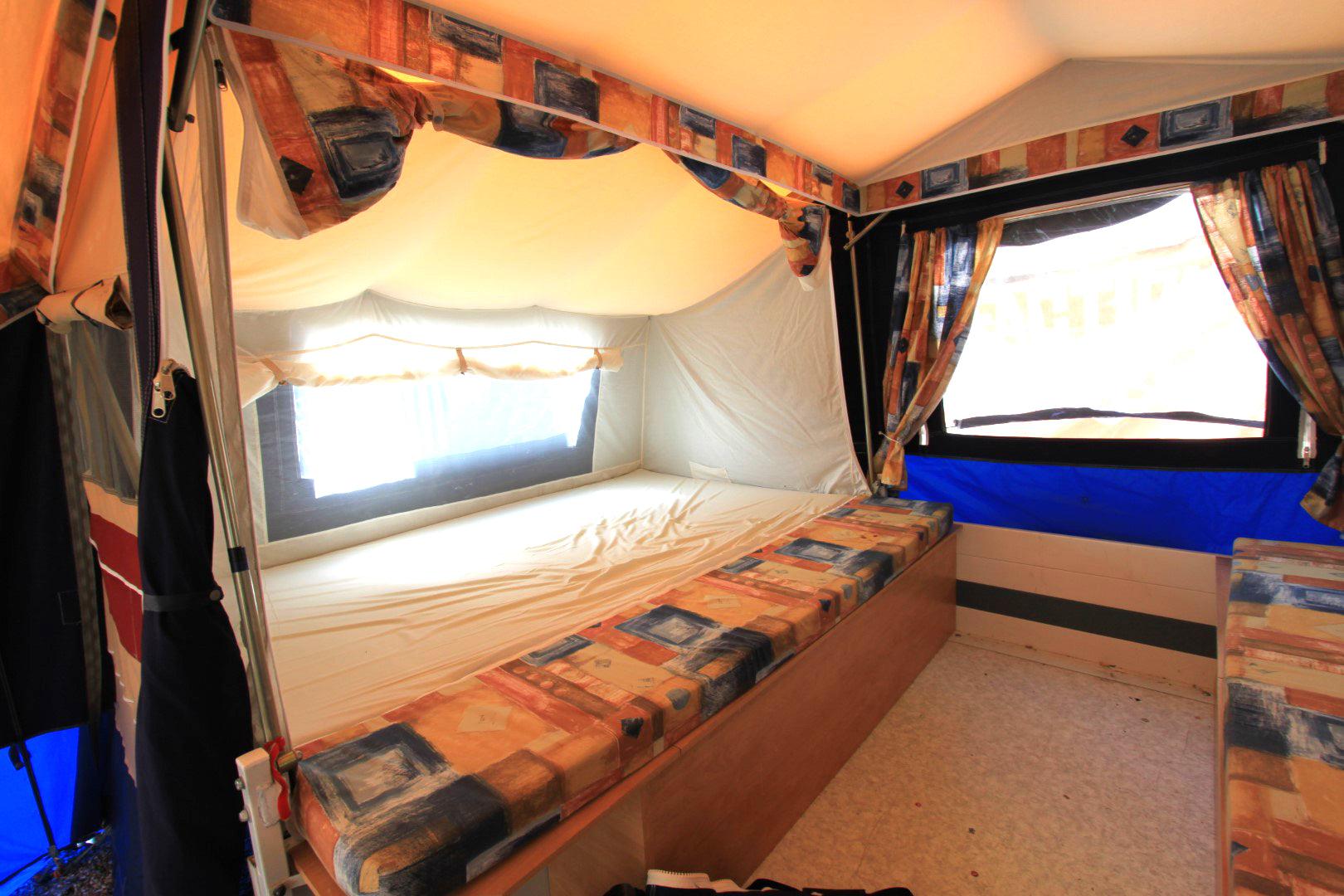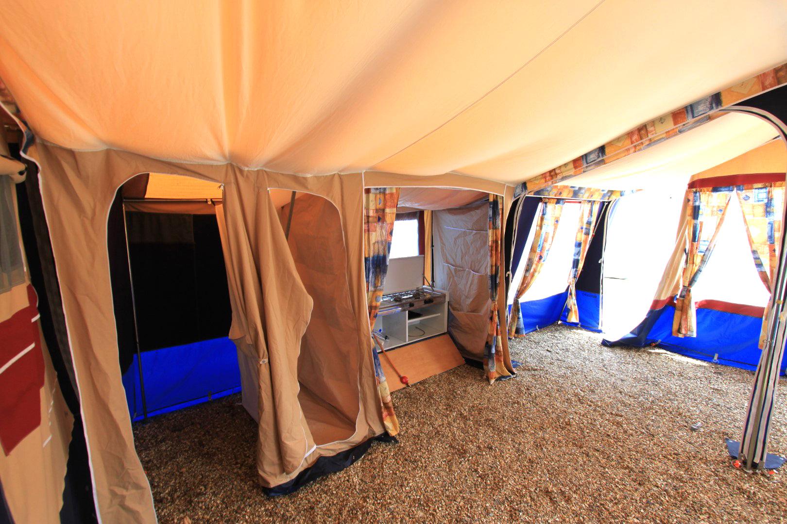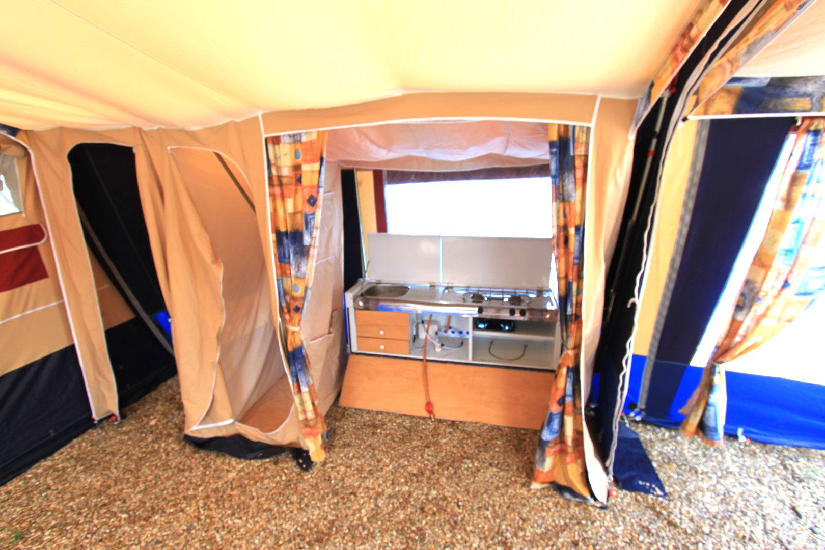 Trigano Chantilly – Lovely Family Trailer Tent Email us or call on 01202 893679 Family Trailer Tent. Lovely condition, excellent non faded canvas. Kitchen unit. Sleeps up to 4 people in 2 generous comfortable beds. Full awning plus optionally fitted short awning extension. Choice is to use either the main or the smaller awning or use them both ( as seen in pictures ).