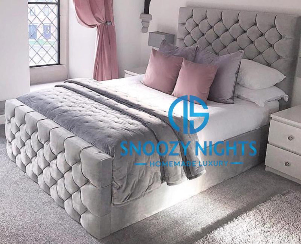 Tara Buttoned Sleigh Chesterfield Bed Frame Available with Storage Options – Default Title – Snoozy Nights