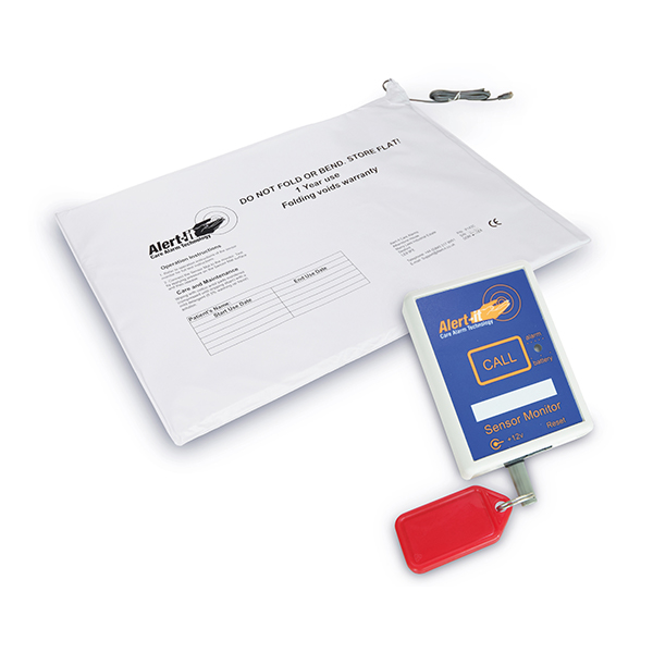 The small detector unit can detect bed or chair vacation by a number of sensors, Alert-it can offer a number of sensors that have advantages in different situations as presented in our product selections. The most popular one is the simple bed pressure mat which is easy to apply and sits over the mattress where is can readily sense the weight being removed from the bed. A smaller mat is available for use in chairs.