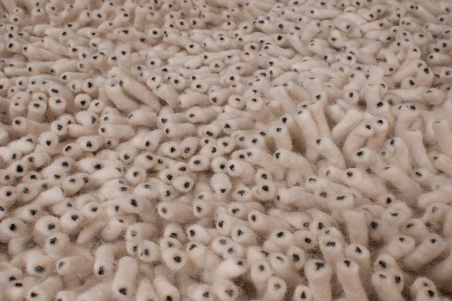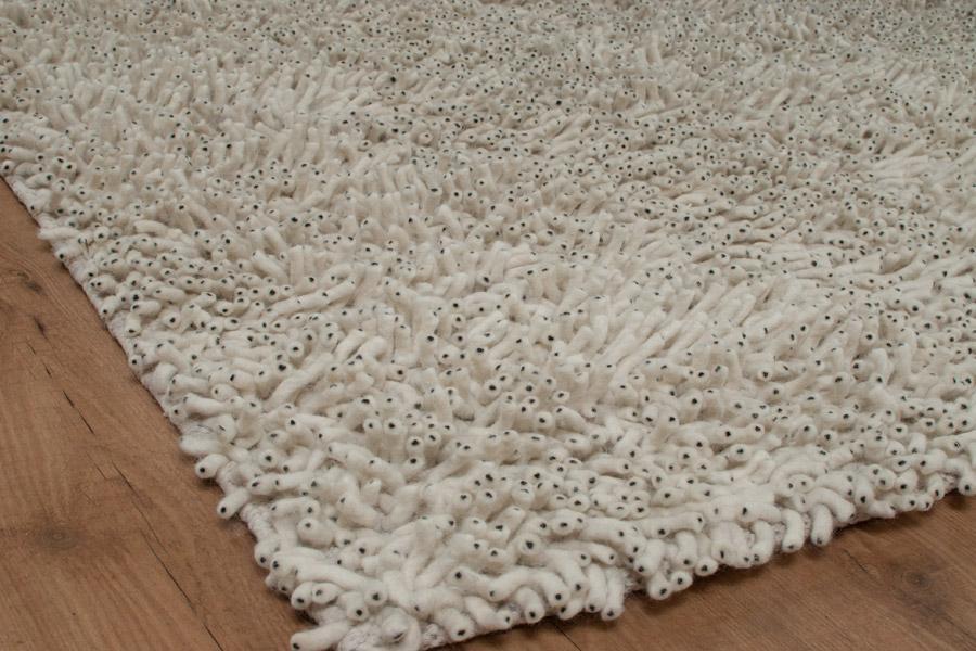 These rugs are made from top quality New Zealand wool. After dyeing, the wool is felted and made in to a long string of about half a centimeter thick. It is then hand knotted on to a sturdy cotton base. The result is a stylish and cosy rug. Wool is naturally stain repellent and this rug will look and feel great for many years. Your feet will love this thick and welcoming rug. The pile is made from thick felted New Zealand wool. The wool is made into a 1cm felt pile and densely woven into a rug. The base of the rug is sturdy cotton which makes the rug strong and durable which ensures that it will lay flat.This rug is natural wool white colour. Each felted piece has a black centre. It will make any space look fresh and lighter. Specification Care & Maintenance: We recommend caring for this rug by shaking it from time to time. Vacuuming is not recommended. The wool is naturally stain resistant, so the rug is easy to care for. Material: Wool / Cotton Style: Modern Manufacturing Technique: Hand Knotted Origin: India Pattern: Plain