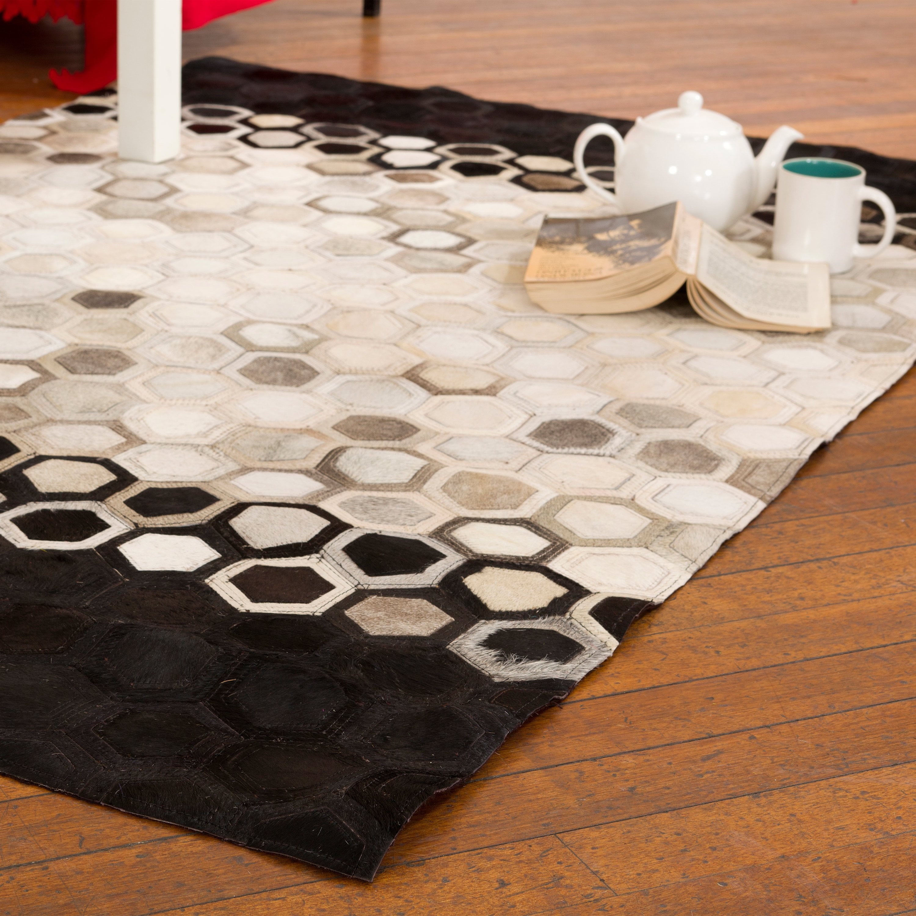 Specification: The Real Rug Company – Patchwork Leather/Cowhide Rug Black/Beige 120 x 180cm / Black / Beige – The Rug Quarter