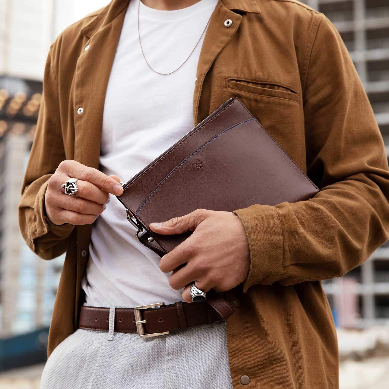 Travel Pouch & E-Reader Case in Oakbark + Cuff Handle – Develop-free – Ethikel