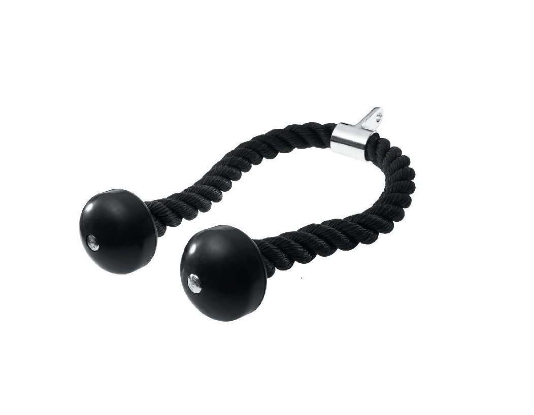 The Triceps Rope Cable Attachment: The  Triceps Rope is a great accessory that is made for everyday home or commercial gym use and designed to fit on any cable exercise equipment. With Triceps Rope cable attachment you will have intense workouts for a variety of different muscle groups like triceps, biceps, shoulders and abs while maximizing the effectiveness of your workouts. Constructed with heavy duty braided nylon and featuring a toughened chromed loop hole for clip on crabbiness.  Product Features: Made from heavy duty twisted nylon to support even the heaviest lifts Approx 70cm long Hardened rubber ends keep user’s hand from slipping off Attached ring is compatible with all clip on cable machines Ideal for developing your triceps, biceps, back, shoulders, abs and improving your grip strength. – Triceps Rope Cable Attachment