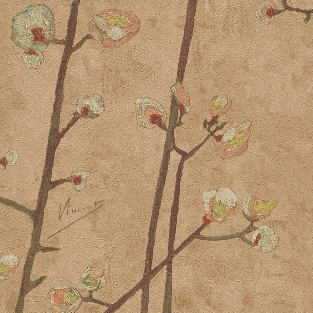 Specification: Van Gogh Wallpaper Plum Orchid Sunlight 220025 | The Design Yard 53 cm x 10 m roll / Light Brown