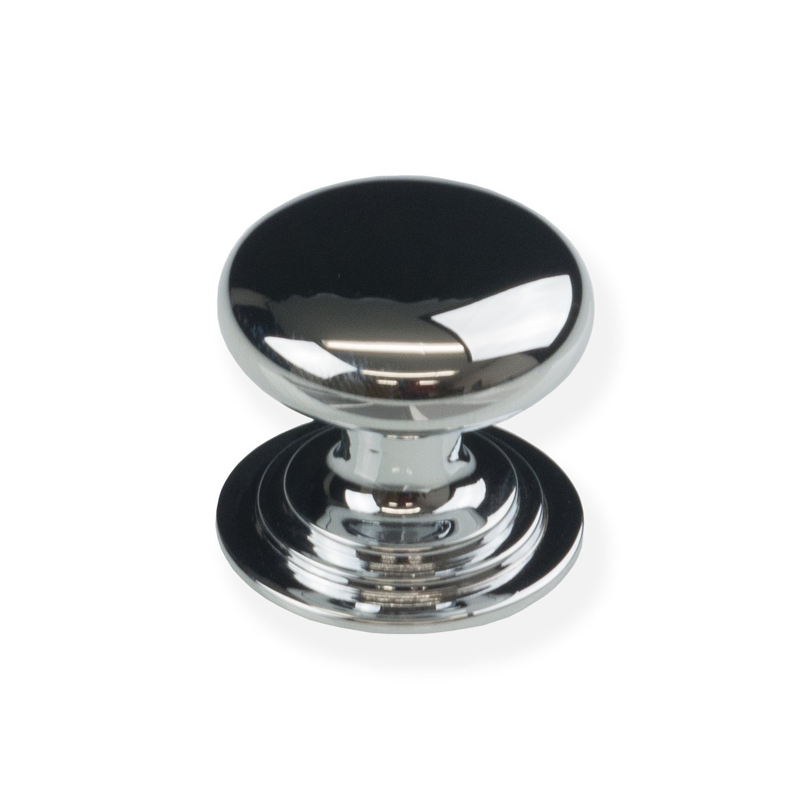 A classic design that works well in period properties or more contemporary homes. Give your kitchen cupboards a style make-over with these chrome cabinet knobs.Solid brass with a polished chrome finishSingle, one piece castingSupplied with fixing screws of 2 different lengthsAlso available in Polished Brass, Antique Brass & NickelSee Dimensions for exact specificationsåÊClick to download dimensions in PDF format. Click to download drawing file in DWG format.