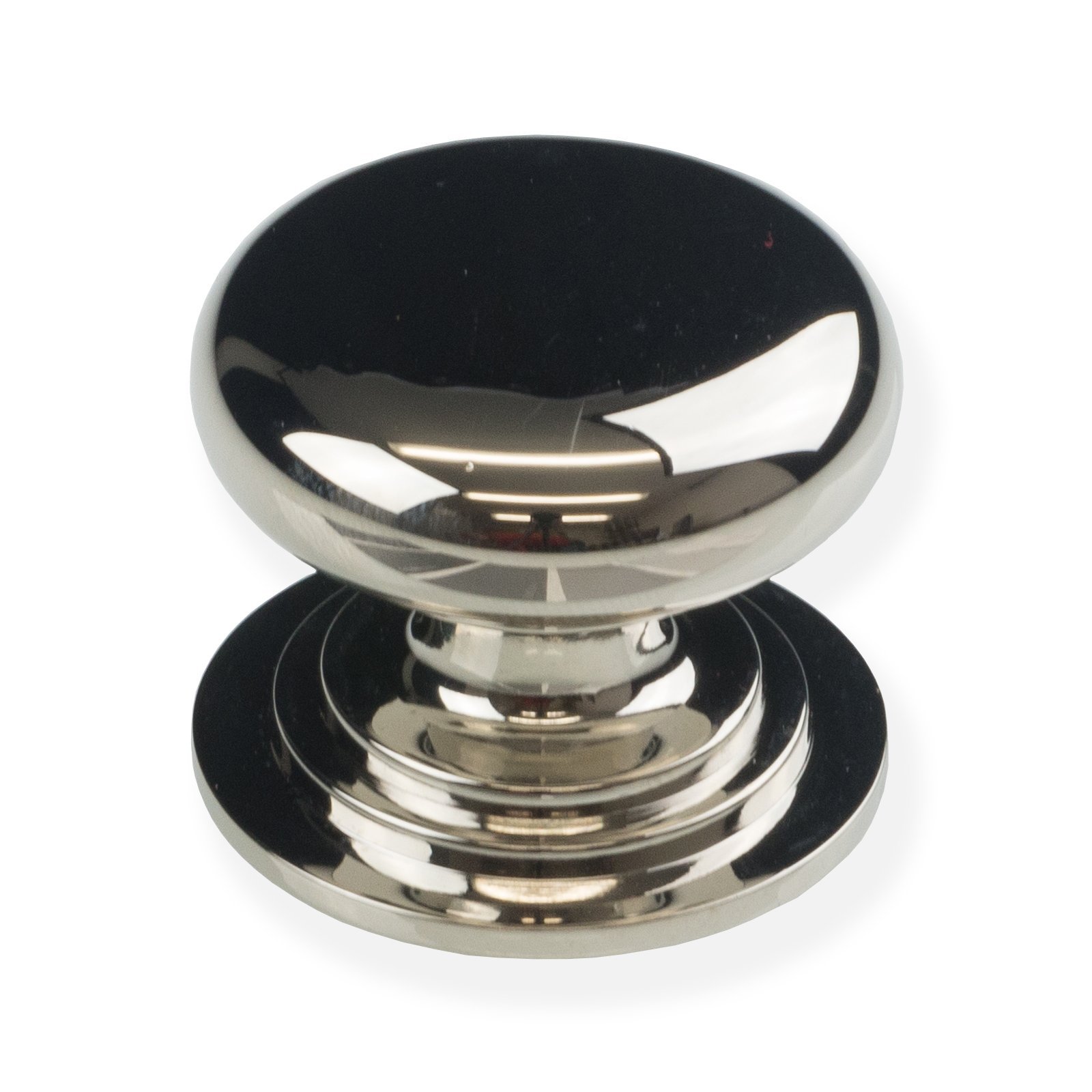 Victorian style cabinet knobs are a classic design, ideal for traditional kitchens or period properties. Nickel has a warm, slightly golden hue and is a great alternative to chrome. Co-ordinate with our Nickel Kitchen Cup Pulls.Solid brass with a nickel finishSingle, one piece castingAvailable in 4 sizes for all types of cupboards and drawersSupplied with two sizes of fixing screw suitable for most cabinet thicknessesAlso available in Polished Brass, Antique Brass & ChromeSee Dimensions for exact specificationsåÊClick to download dimensions in PDF format. Click to download drawing file in DWG format.