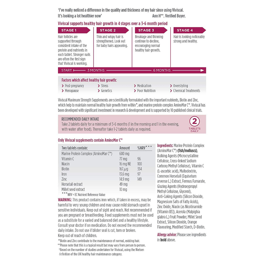 Specification: Viviscal, Women’s Max Strength Supplements 60 Tablets – Vitamins & Supplements – Your Pharmacy
