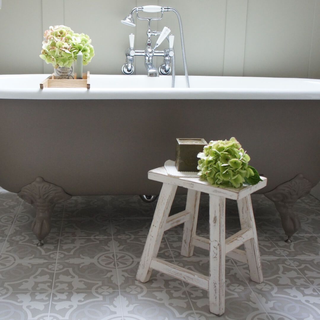 White Wash Antique Rustic Stool, 40cm – Milking Stools – Acumen Collection