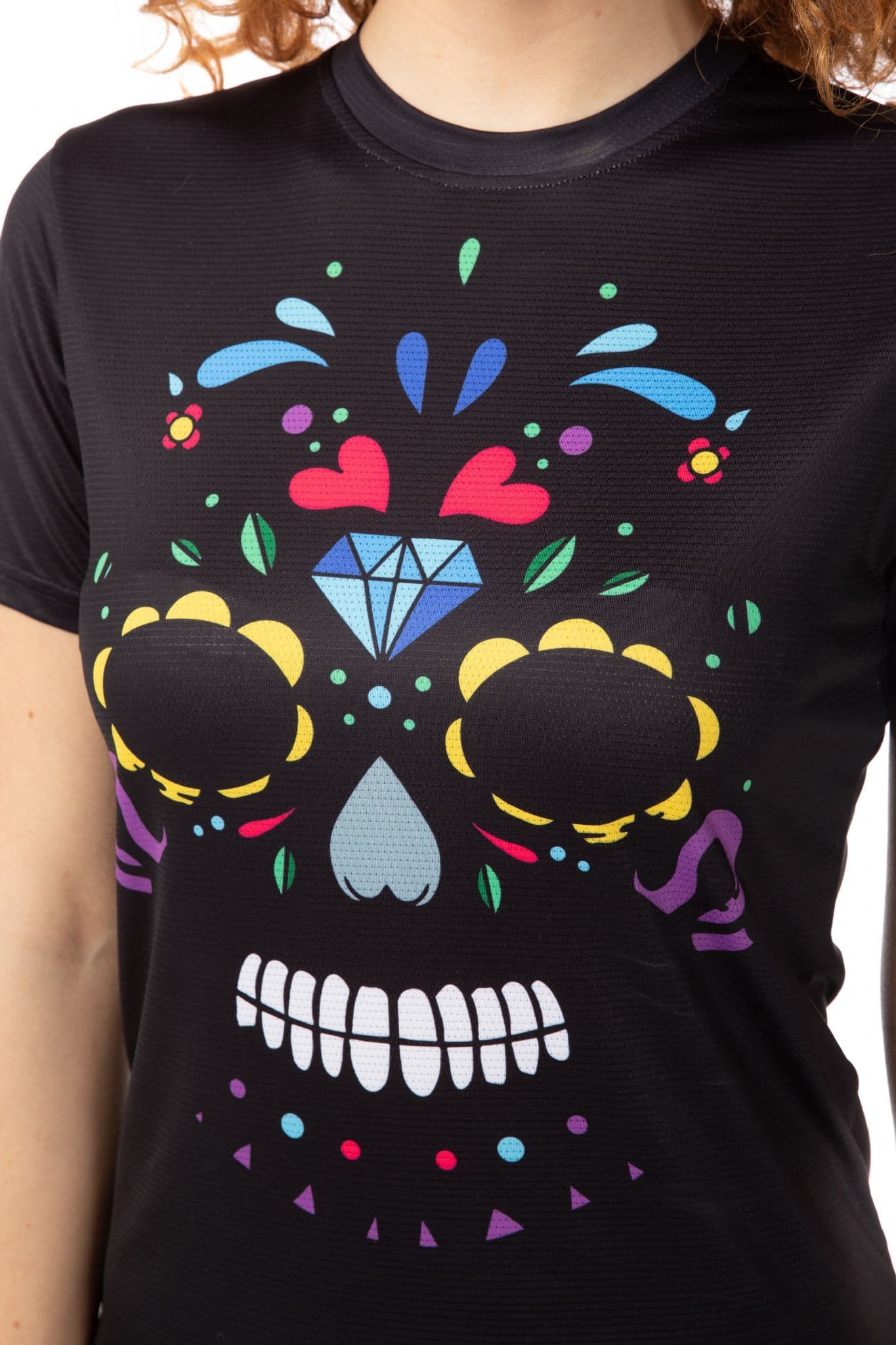 Specification: Women’s Sugar Skull Print Short-Sleeve Workout Running Top – 14 – REdbEAR Sports