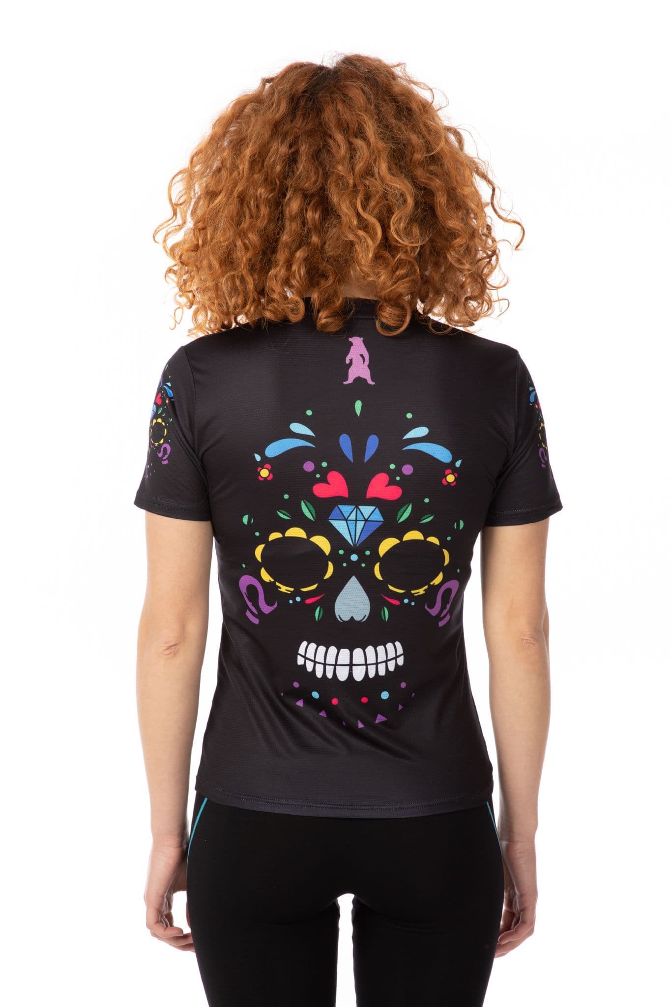 Make sure you don’t overheat during your runs with the womens colorful print short-sleeve workout t-shirt. Constructed with high quality polyester material for lightweight, flexible performance, this t-shirt features classic design with short-sleeves, o neckline and colorful print detailing, and moisture-wicking – odor resistant tech that provides dry, fresh and breathable comfort. Pair with colorful leggings or solid shorts and a lace-up sneakers for a look we are crushing on.Quick-dry: YesAnti-Bacterial: YesUV protection: Yes4-Way stretch: YesSoft and comfortableMaterial: Italian polyesterSizing – please see image gallery for our size chart.Returns – 30 day money back guarantee. Our family business wants you to be completely satisfied. If you wish to return the item or exchange it please get in touch. In cases where items have been purchased as a gift we have made exceptions and have issued refunds for up to 50 days. – Womens Sugar Skull Print Short-Sleeve Workout Running Top – 14 – Redbear Sports – Women’s Sugar Skull Print Short-Sleeve Workout Running Top – 14 – REdbEAR Sports