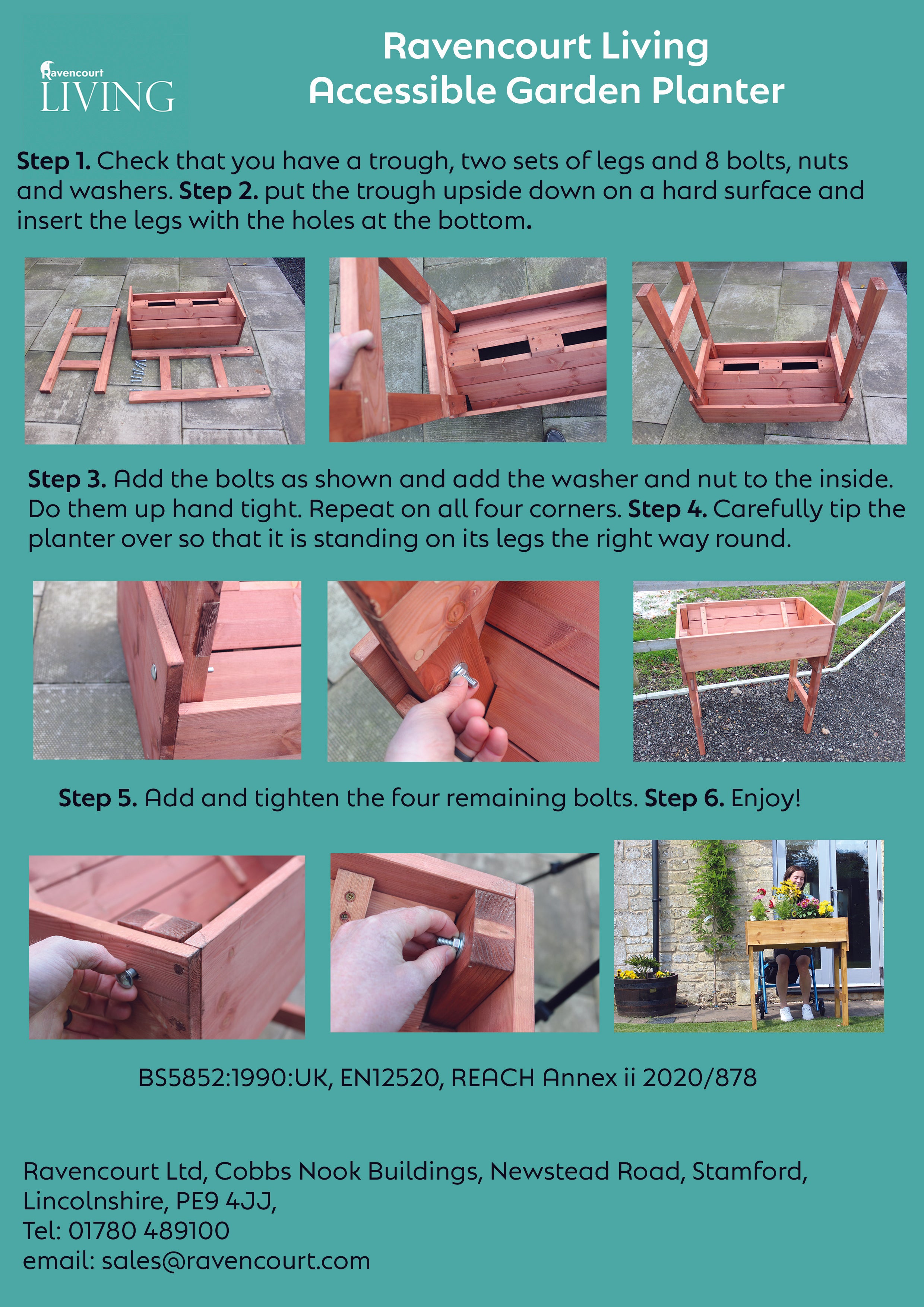 This accessible wooden planter has been thoughtfully designed and is perfectly suited for those who struggle with mobility, with enough space underneath for a wheelchair or bench seat. For people who experience back or knee pain there is no need to bend down, as this accessible planter brings the garden up to your level, no need to kneel or bend. The V-shape of the planter means it is also possible to grow deeper-rooted vegetables like potatoes. Made from a robust weather proofed timber frame this item is perfect for any garden and condition. Membrane liner is included. Some easy self-assembly and a 13mm socket/spanner is required.