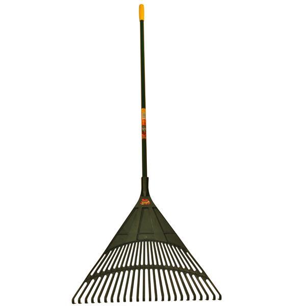 Yeoman Leaf RakeClear up those autumn leaves around the beds and borders, and get your garden looking tidy again, with this sturdy plastic leaf rake.Its large A shaped head maximises ground coverage, ensuring for consistent raking along its length. Set on a sturdy handle of carbon steel, the rake features a comfortable soft grip so that your time outside is a breeze.Large 24 inch headFlat A shape allows all tines to be in contact with the ground while rakingIdeal for clearing leaves, grass trimmings and other debrisStrong carbon steel handle set with a soft grip170cm in length