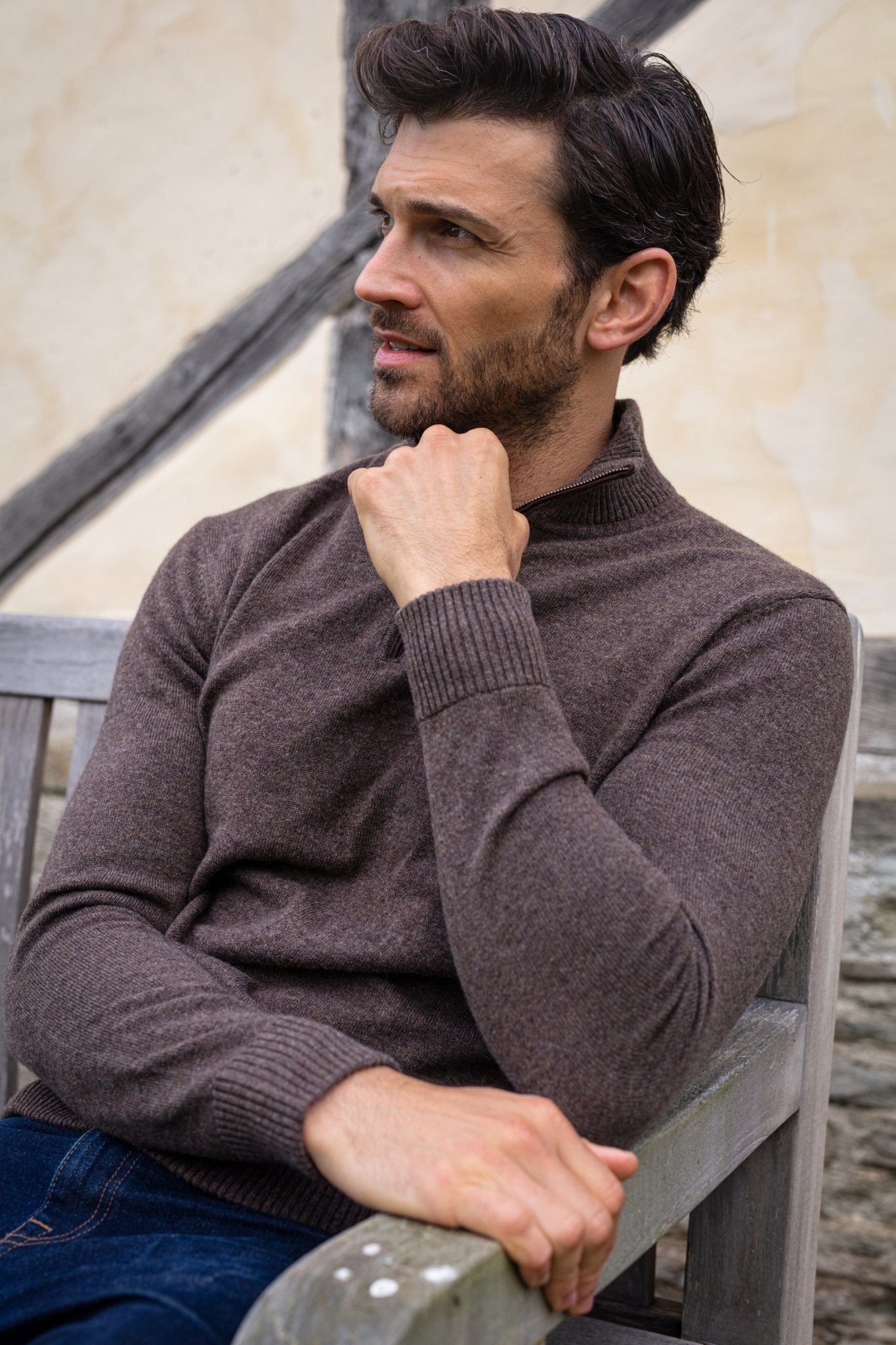 This stylish zip neck sweater comes in a variety of colours for you to choose from. Made from two ply cashmere, this piece features an alcantara trim beside the zip. The sweater also has a ribbed neck, hem, and cuffs, as well as a contrasting strip inside the collar. It is ideal for layering all year round. 2 ply pure cashmere Ribbed funnel neck Neck zipper edged with alcantara trim Ribbed hem and cuffs Soft and comfortable to wear Wide variety of colours to choose from